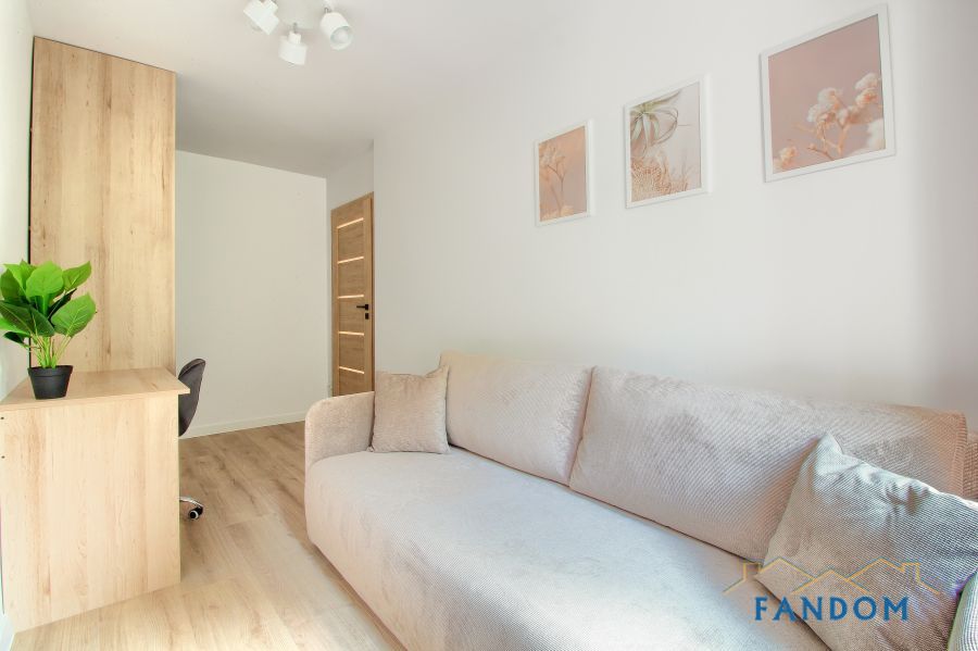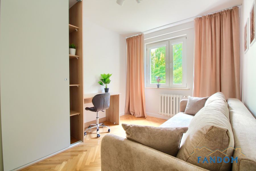 Każdy z pokoi wyposażony w łóżko, dużą szafę i biurko. W sypialni dodatkowo komoda