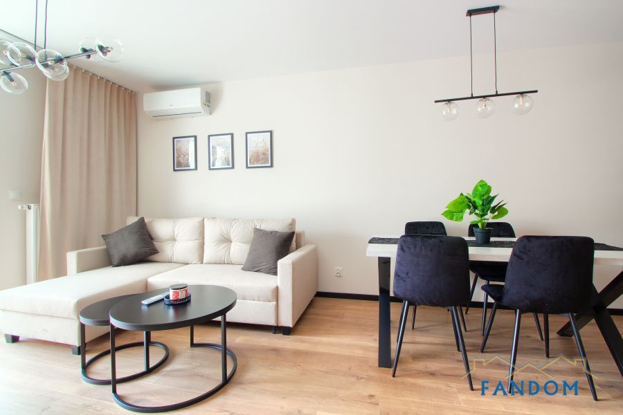 Wszystkie sprzęty AGD i meble nowe! Dostępna zmywarka, piekarnik i kuchenka mikrofalowa w zabudowie, płyta indukcyjna.