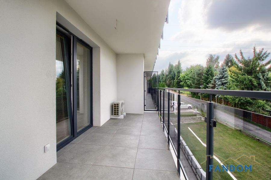 Salon połączony z kuchnią, sypialnia z garderobą, łazienka i przedpokój. Duży balkon z wyjściem z salonu i z sypialni.