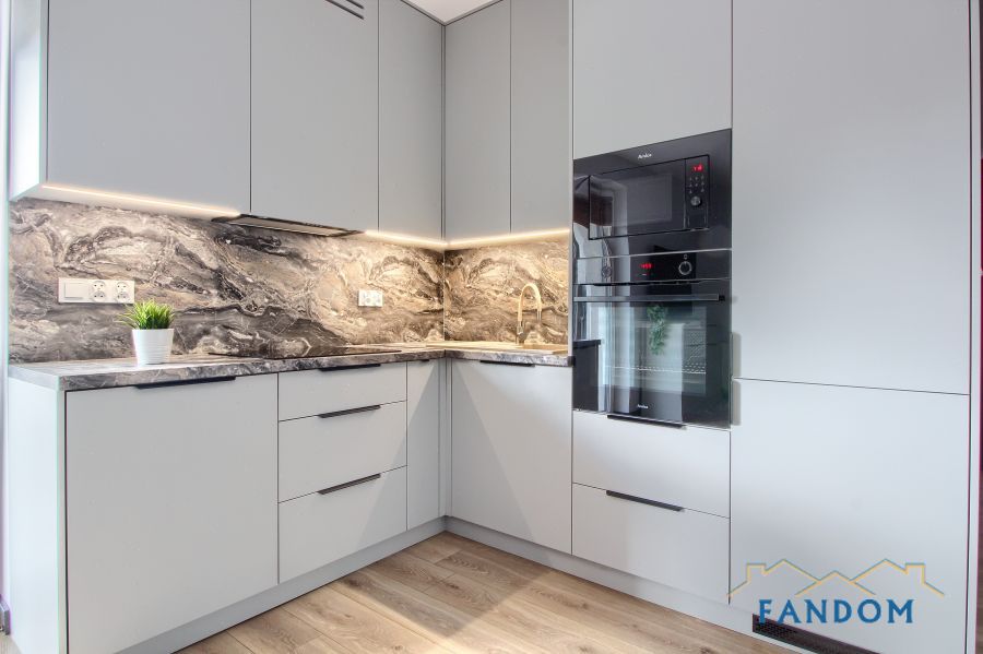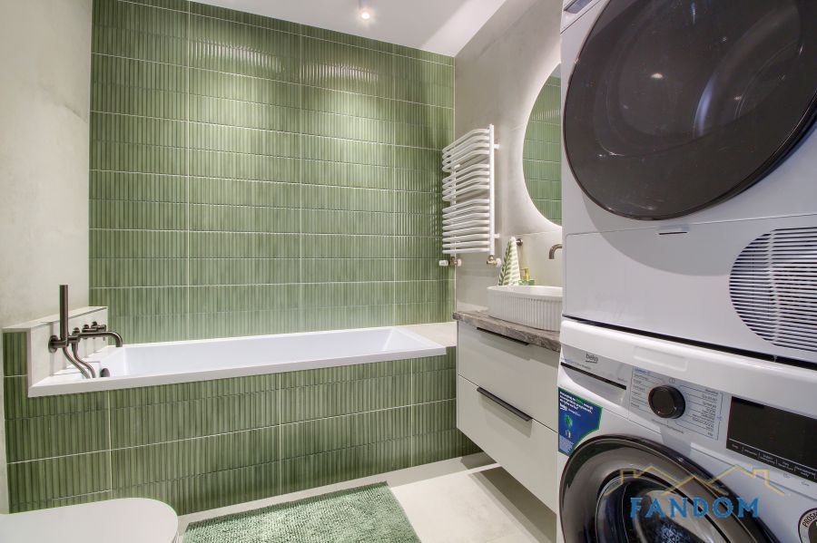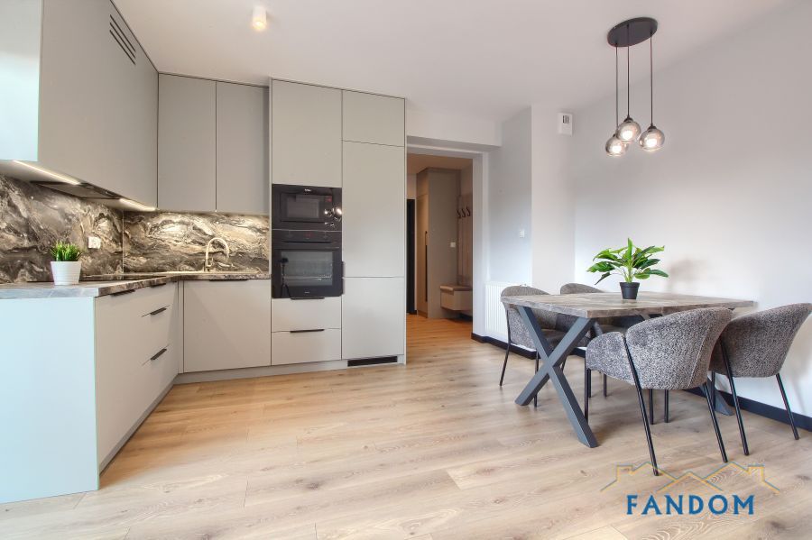 Mieszkanie wyposażone w najwyższej jakości meble oraz sprzęt AGD (pralka, SZUSZARKA, zmywarka, piekarnik, płyta indukcyjna i mikrofala). Kuchnia i łazienka wykończone z użyciem najwyższej jakości materiałów.