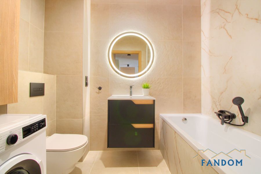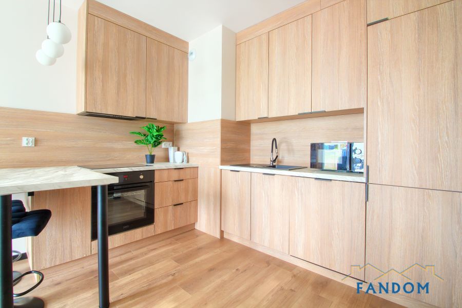 Wszystkie sprzęty AGD i meble nowe! Dostępna zmywarka, piekarnik i kuchenka mikrofalowa w zabudowie, płyta indukcyjna.
