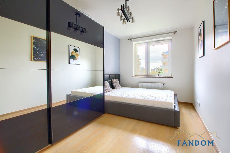 Składa się z przestronnego salonu połączonego z kuchnią, dwóch oddzielnych sypialni, łazienki, toalety, garderoby a także dużego balkonu.