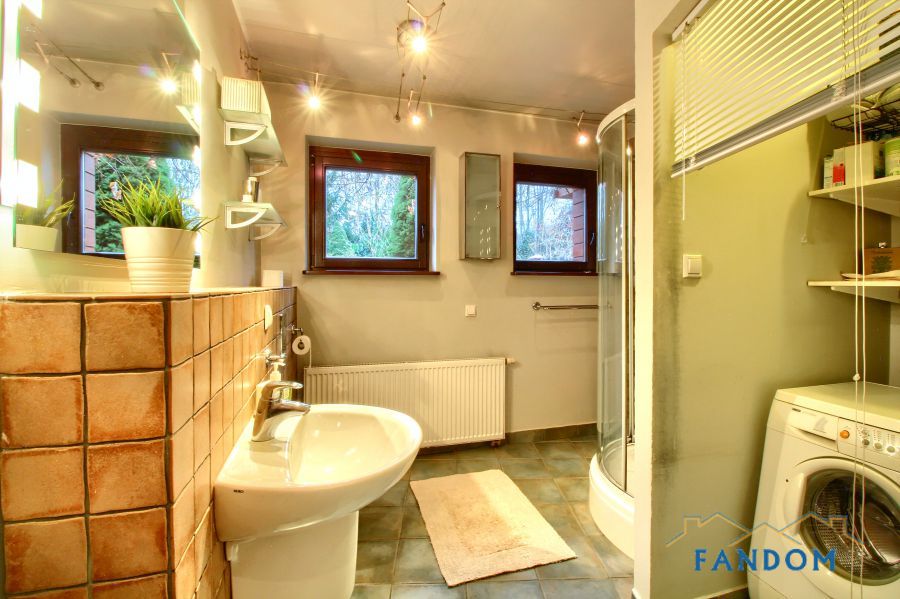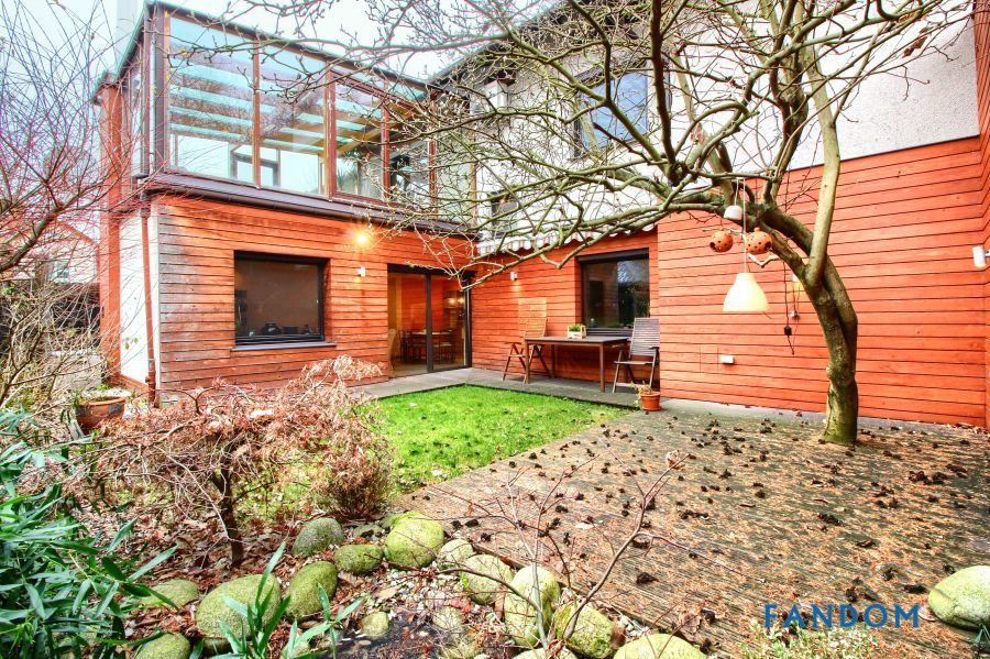 Budynek skąpany w zieleni znajdującej się na działce o powierzchni 3,5 a. Dostępny garaż zamykany automatycznie.