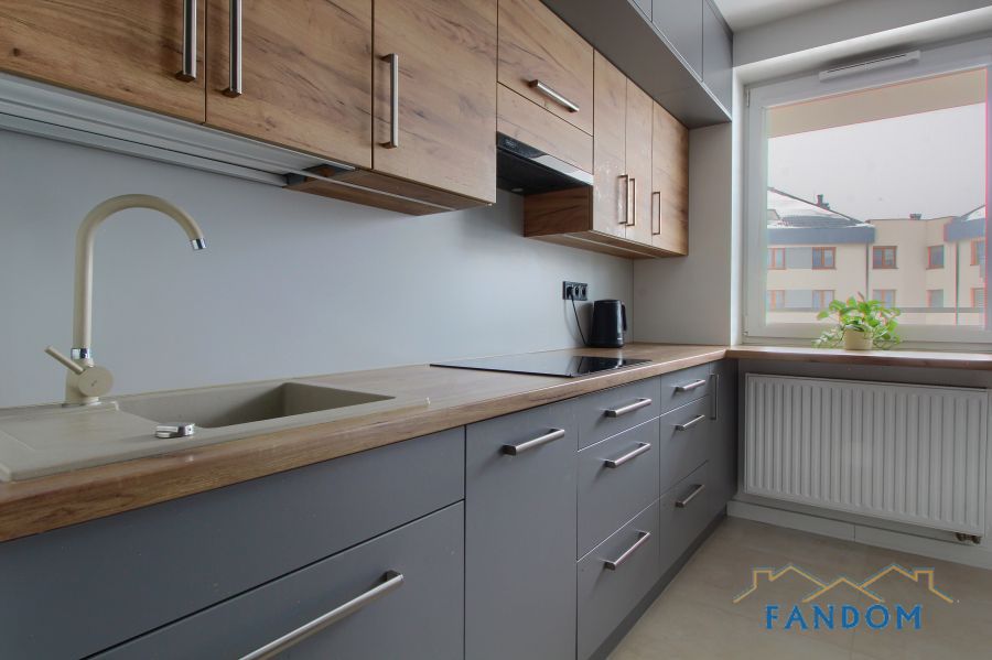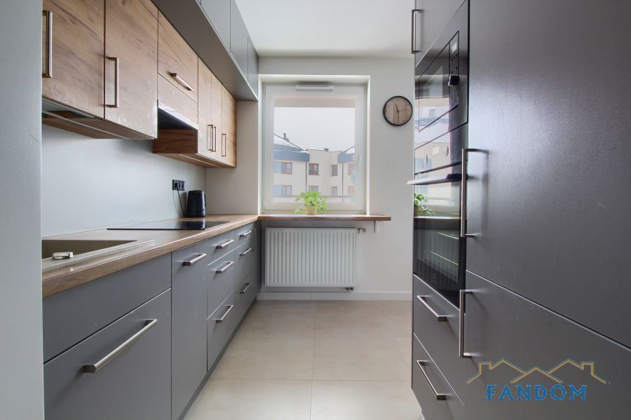 Lokal wykończony w wysokim standardzie; wyposażony w funkcjonalne meble i sprzęt AGD: lodówka, kuchnia indukcyjna, okap, piekarnik, zmywarka, mikrofalówka oraz pralka.