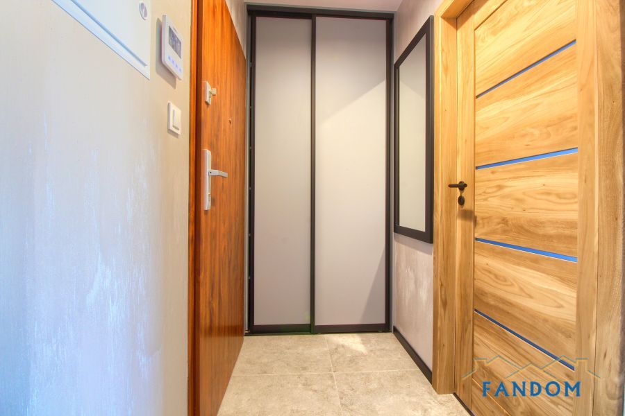 Mieszkanie składa się z: salonu z kuchnią i oddzielną sypialnią, łazienką z kabiną prysznicową oraz przedpokoju.