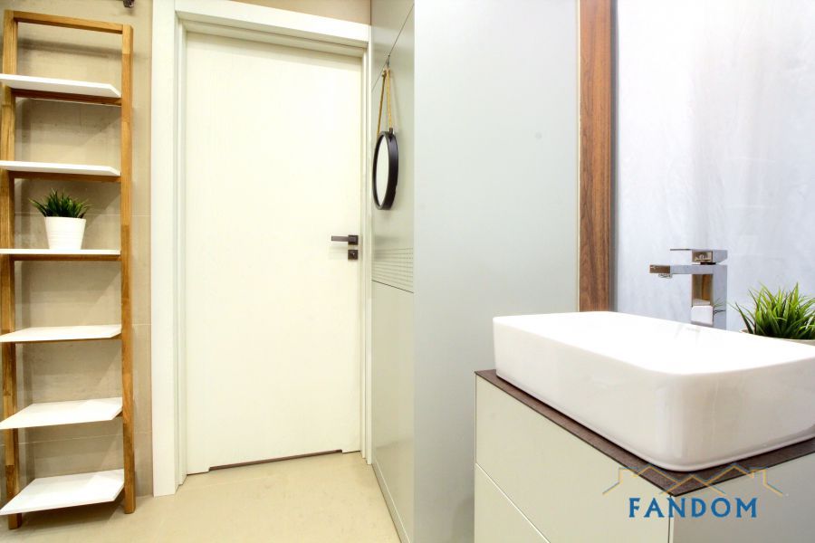 Nieruchomość o powierzchni 58 m2 ,składa się z salonu połączonego z aneksem kuchennym, sypialni, łazienki oraz wydzielonego z części salonu gabinetu.