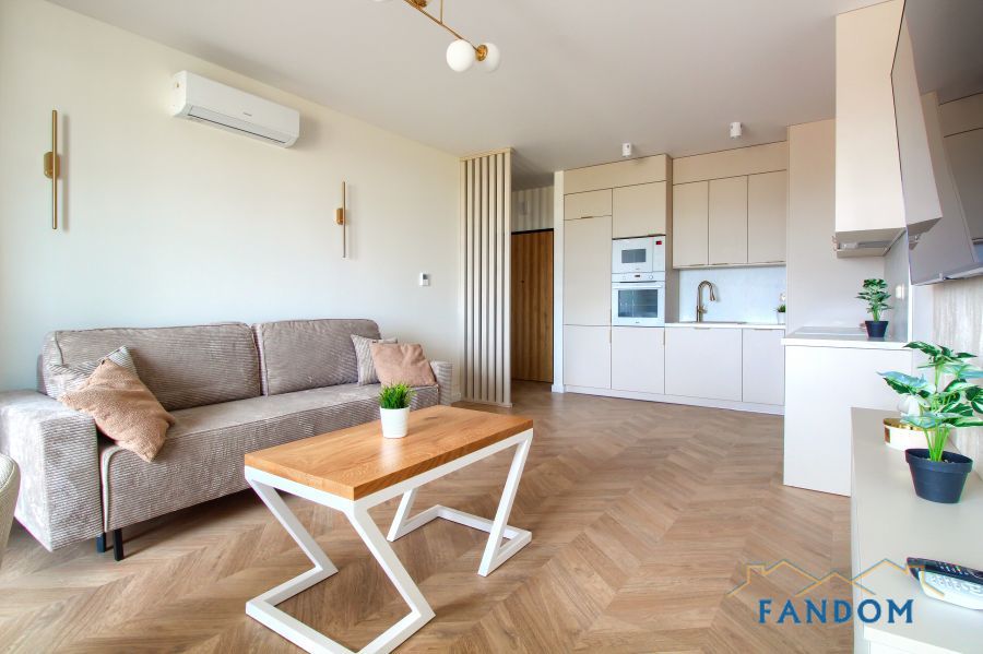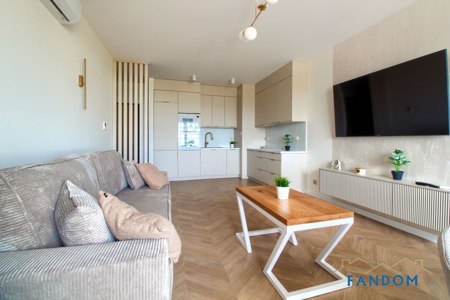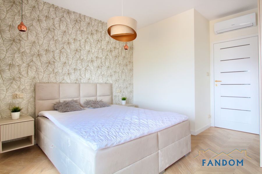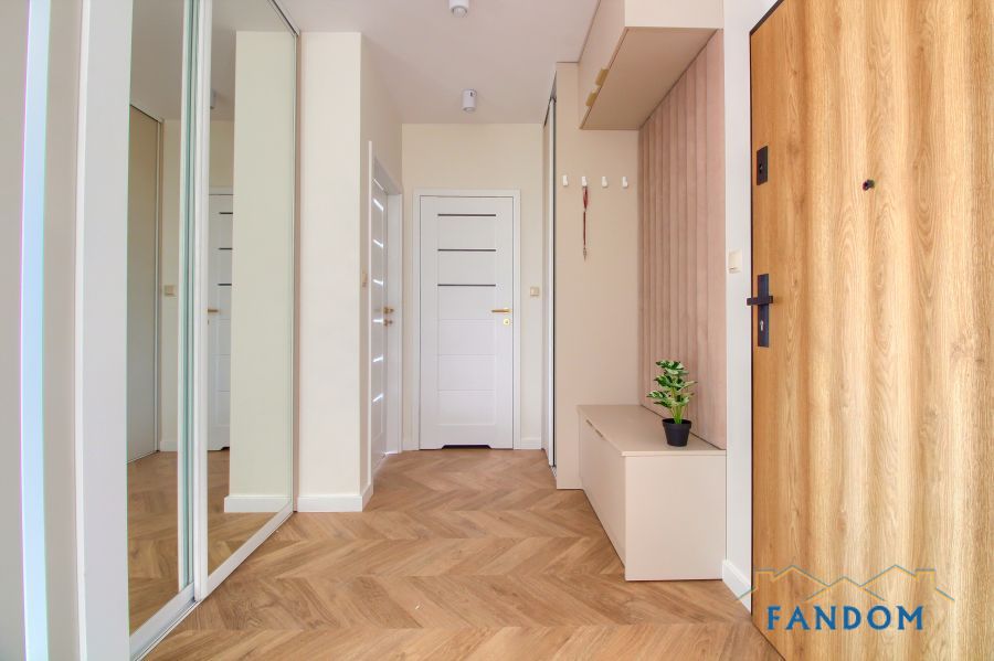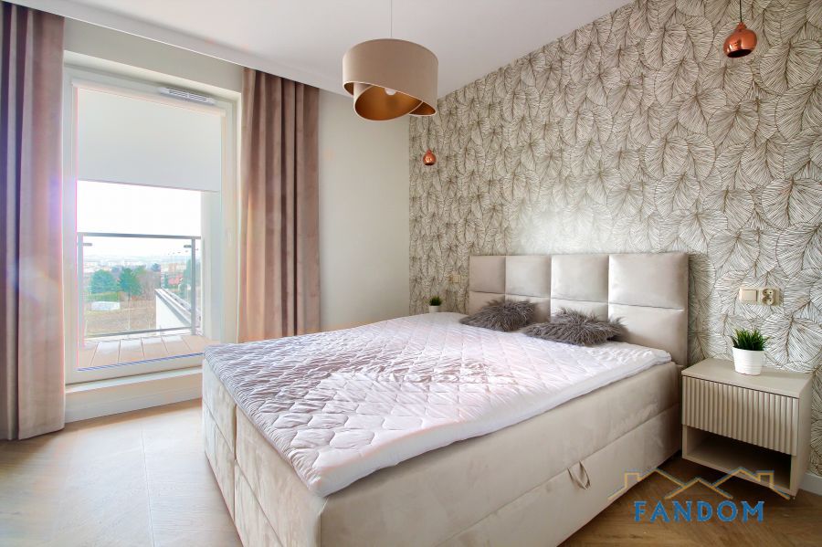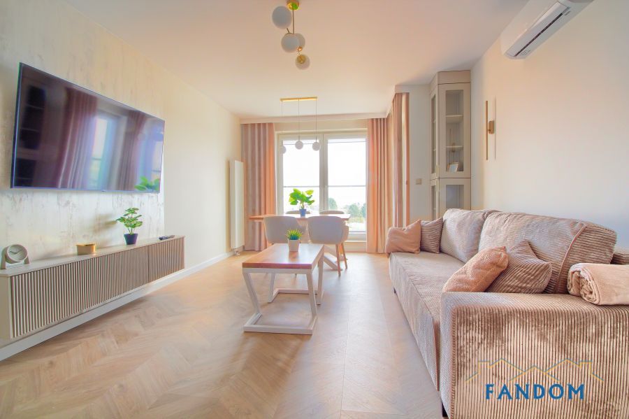 LUKSUSOWE mieszkanie o powierzchni 54 m2 składające się z salonu z jadalnią i aneksem kuchennym, sypialni, łazienki, przedpokoju.