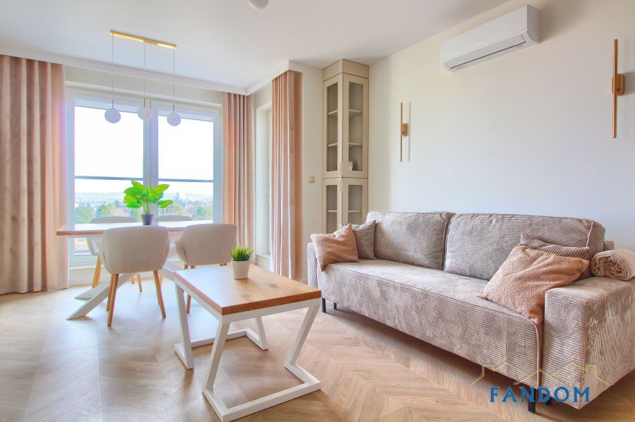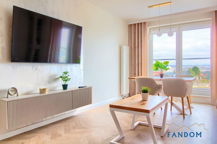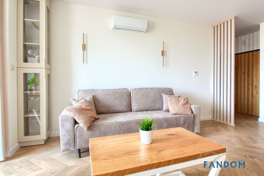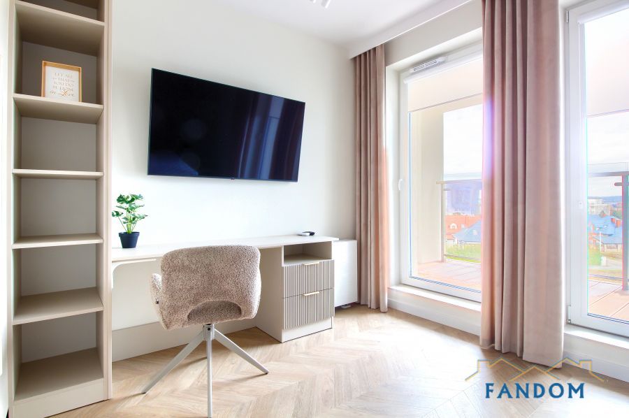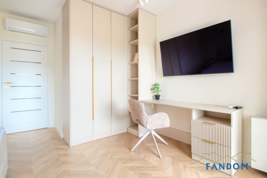 Pełne umeblowanie każdego pomieszczenia. W salonie stół dębowy, podświetlana witryna. W sypialni wygodne łóżko, szafa i biurko. W przedpokoju dwie podświetlane szafy. W każdym pomieszczeniu nowoczesny TV i klimatyzacja.