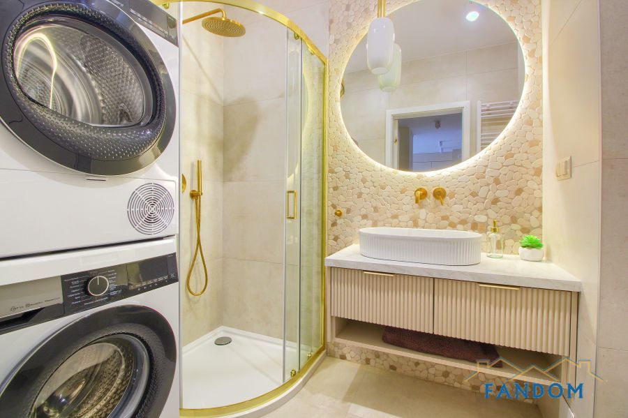 Kuchnia i łazienki wykończone z najwyższej jakości materiałów, baterie podtynkowe, FULL AGD - zmywarka, piekarnik z płytą indukcyjną, mikrofala, pralka i SUSZARKA do odzieży.