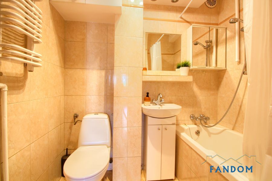 Mieszkanie składa się z dużego salonu, pokoju, przestronnej kuchni, łazienki z toaletą.