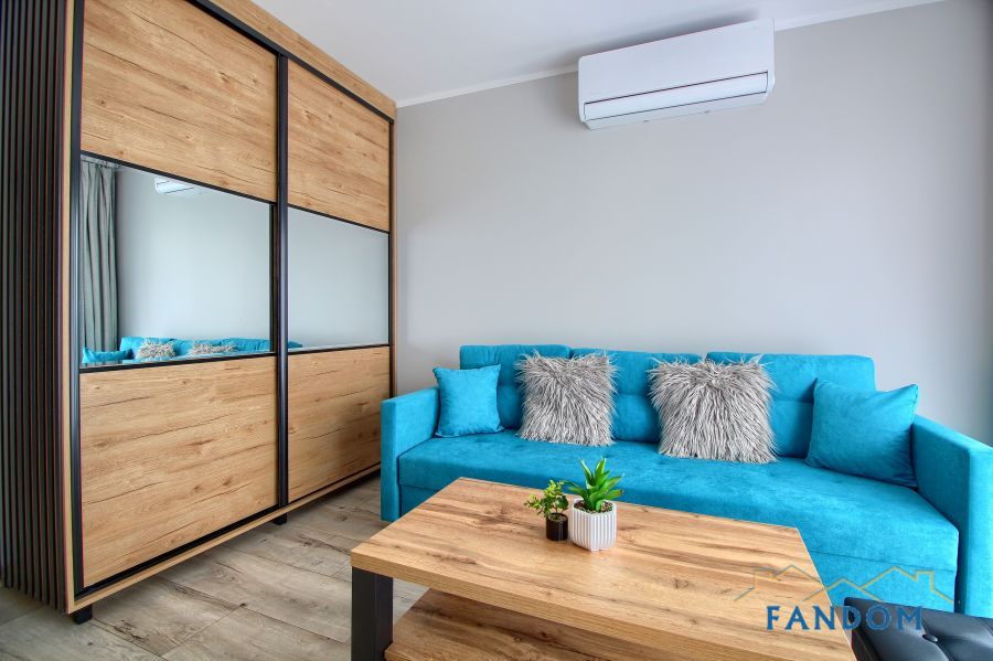 Lokal o powierzchni 35 m2, składa się z salonu połączonego z aneksem kuchennym, sypialni, przedpokoju, łazienki i balkonu. Dostępna KLIMATYZACJA!