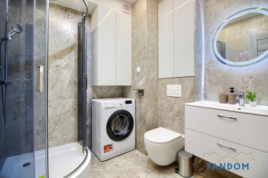 Wykończona w nowoczesnym standardzie, wyposażona w nowe meble i sprzęt AGD: pralka, zmywarka, kuchnia indukcyjna, piekarnik oraz telewizor.
