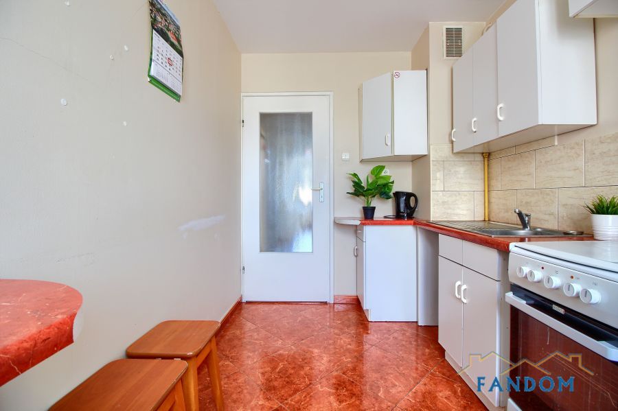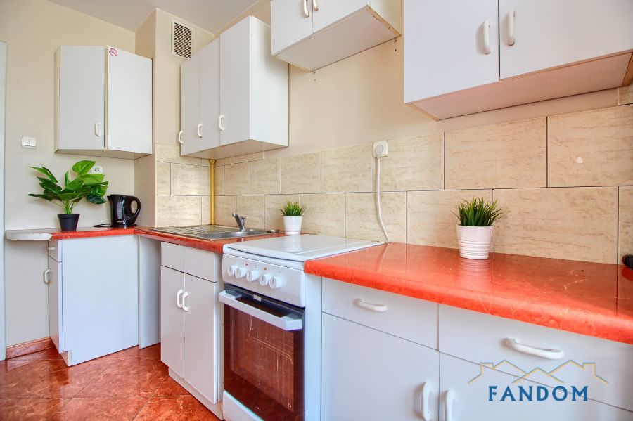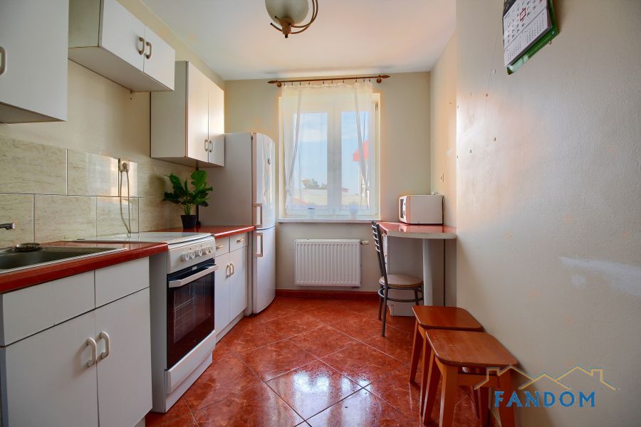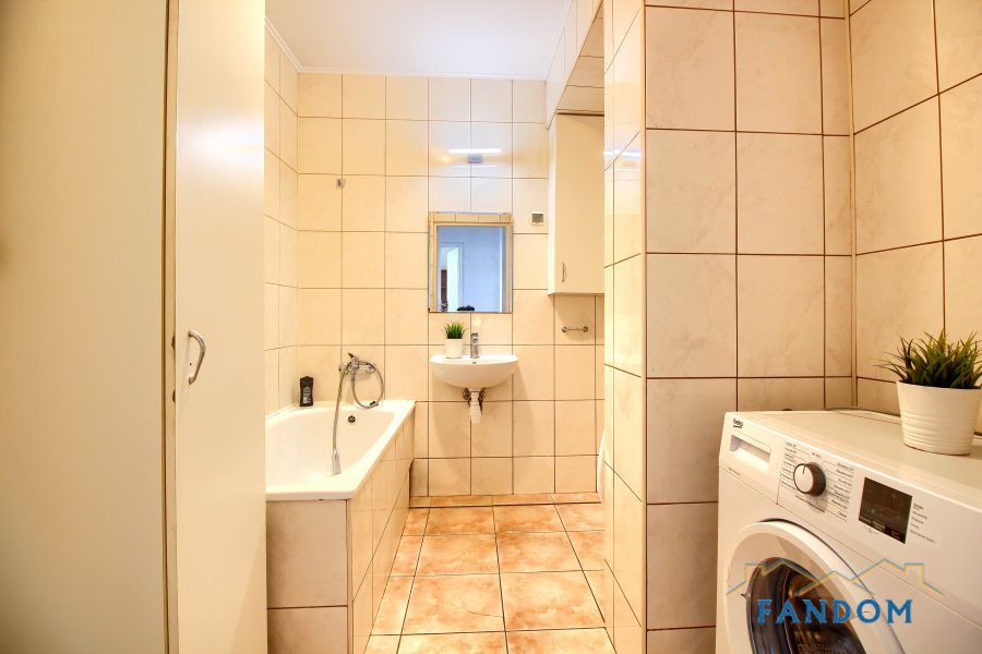 Mieszkanie wyposażone w sprzęt AGD: pralka, lodówka, kuchenka, piekarnik, mikrofalówka.